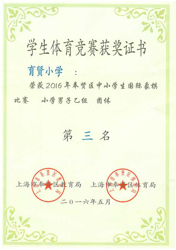 2016年奉贤区“南桥杯”中小学生中国象棋比赛小学男子乙组团体